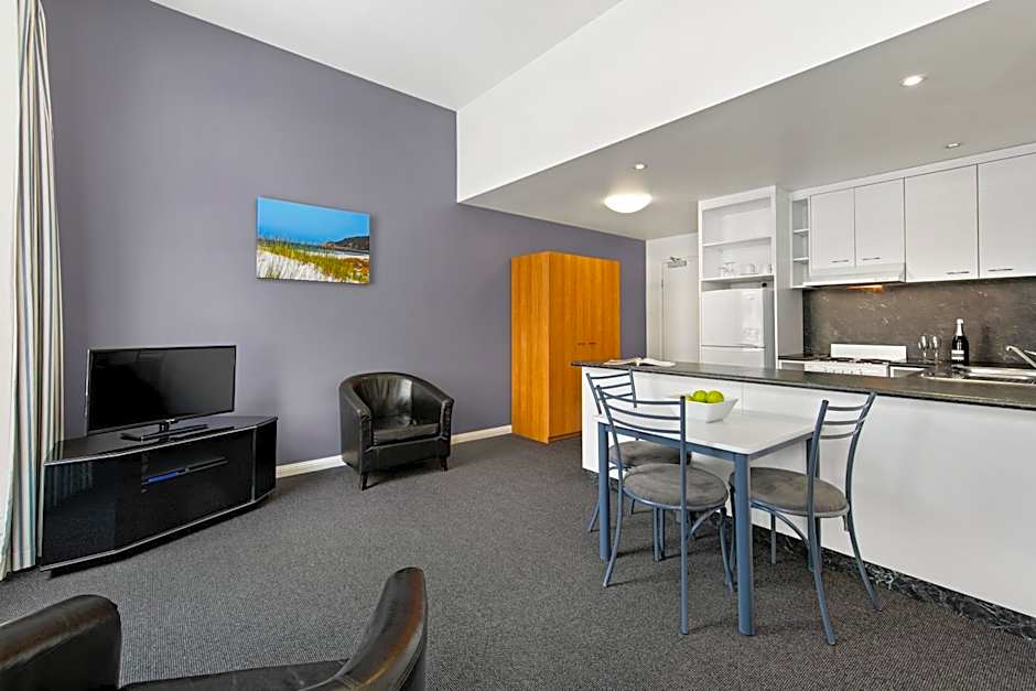 Please note that the Budget Studio Apartment and the Budget One-Bedroom Apartment are not located in the main building. They are located accross the road in the Annex building. These room types have a different standard to the main hotel. They are accessed via stairs only, to the 2 levels of accommodations.